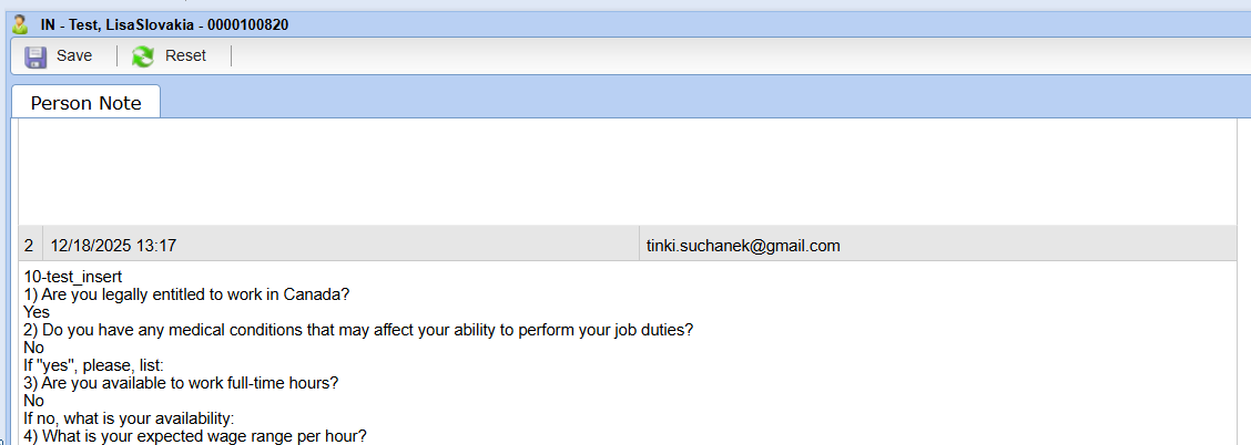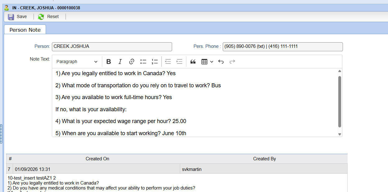 - If you have Pre-programmed Interview questions, they will appear in the Note Text field